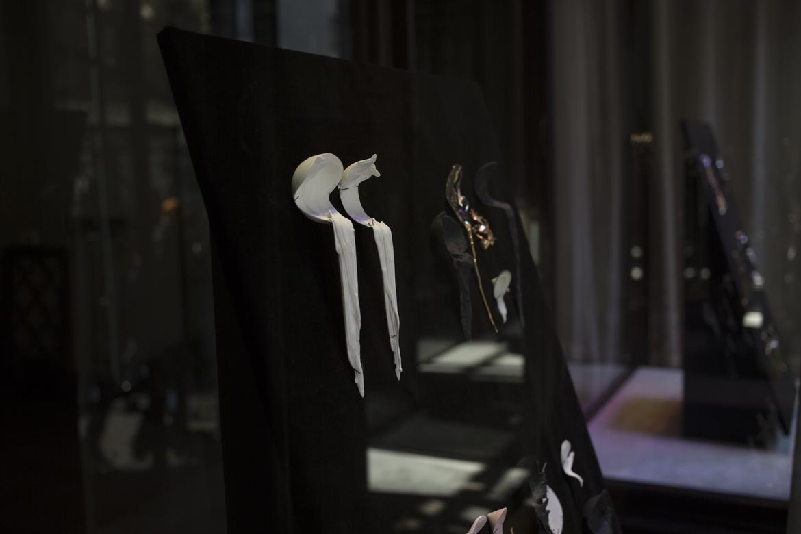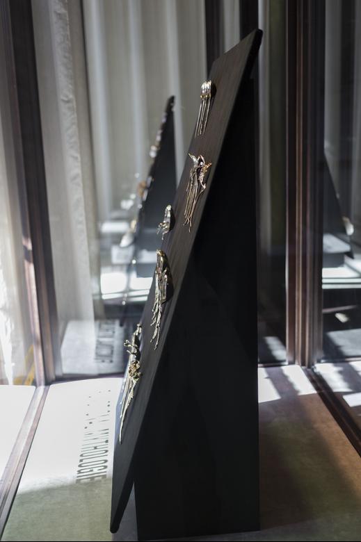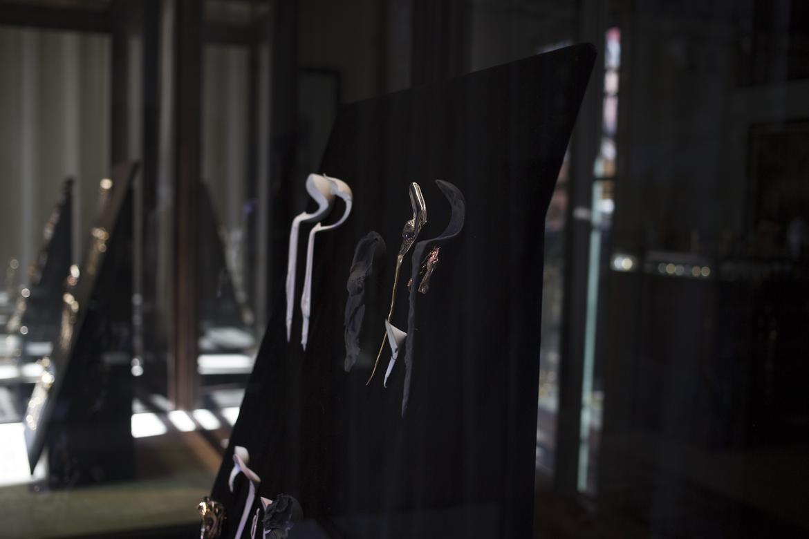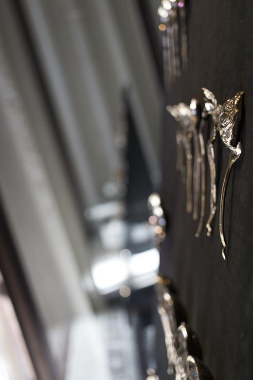 Gamwell uses a sophisticated technical process involving bone china, phosphate dyes, water, and semiprecious metals to create sculptural objects that seductively straddle the line between the fine and applied arts. The result is beautifully disconcerting: fine china and flatware firmly reimagined through the chaotic logic of the natural world.