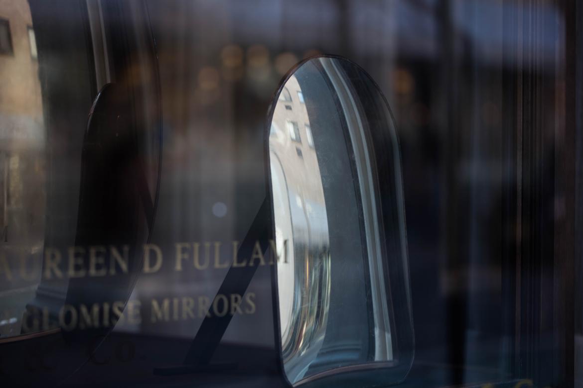 Maureen Fullam has been incorporating the technique of reverse gilding and painting on glass, known as Verre Eglomise, since the late nineteen eighties. During this time she has worked with premiere architects, designers and world-class decorators executing extraordinary commissions and special projects. These have ranged from small decorative objects, custom furniture, to mirrored wall and ceiling installations.
