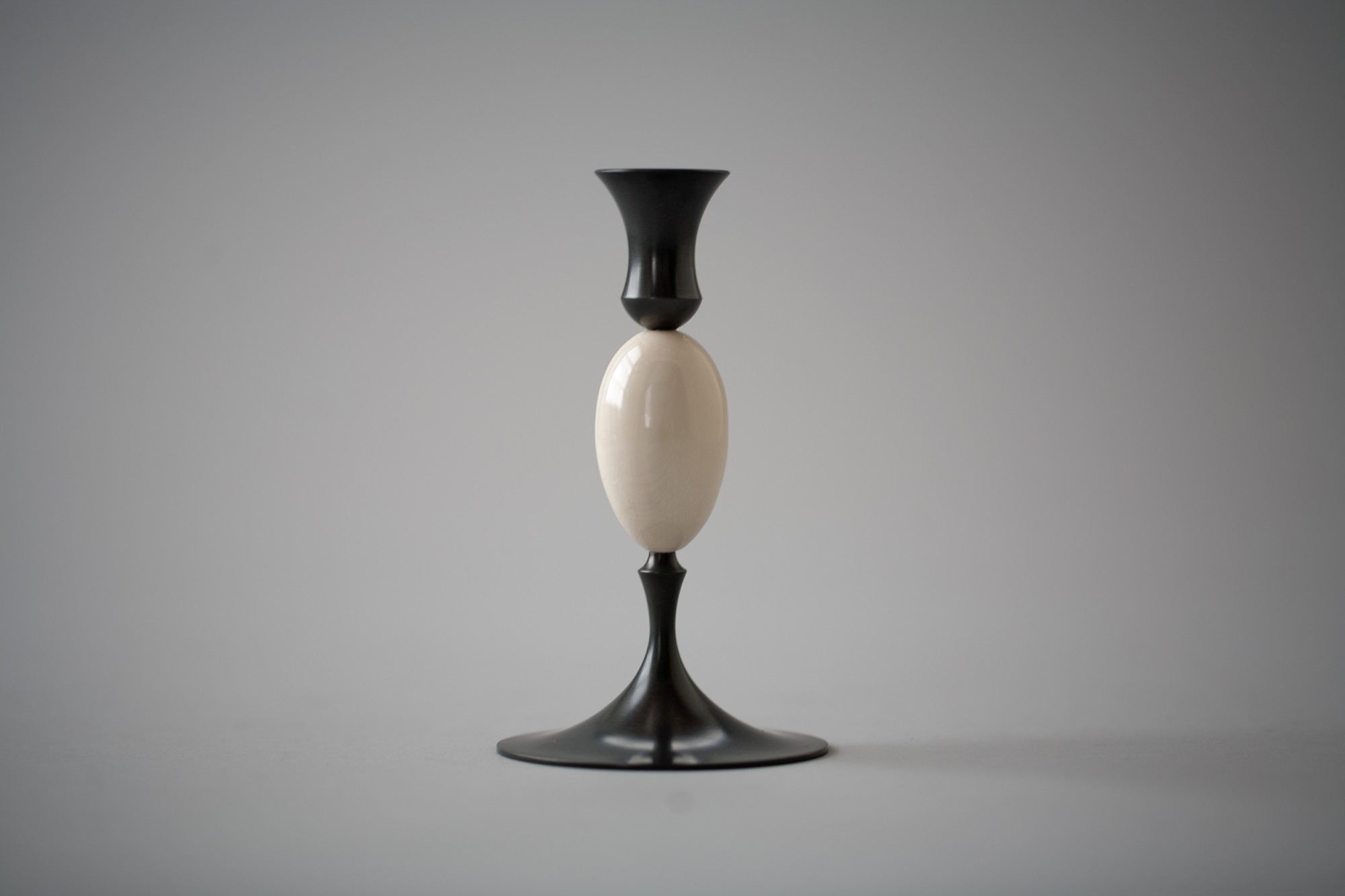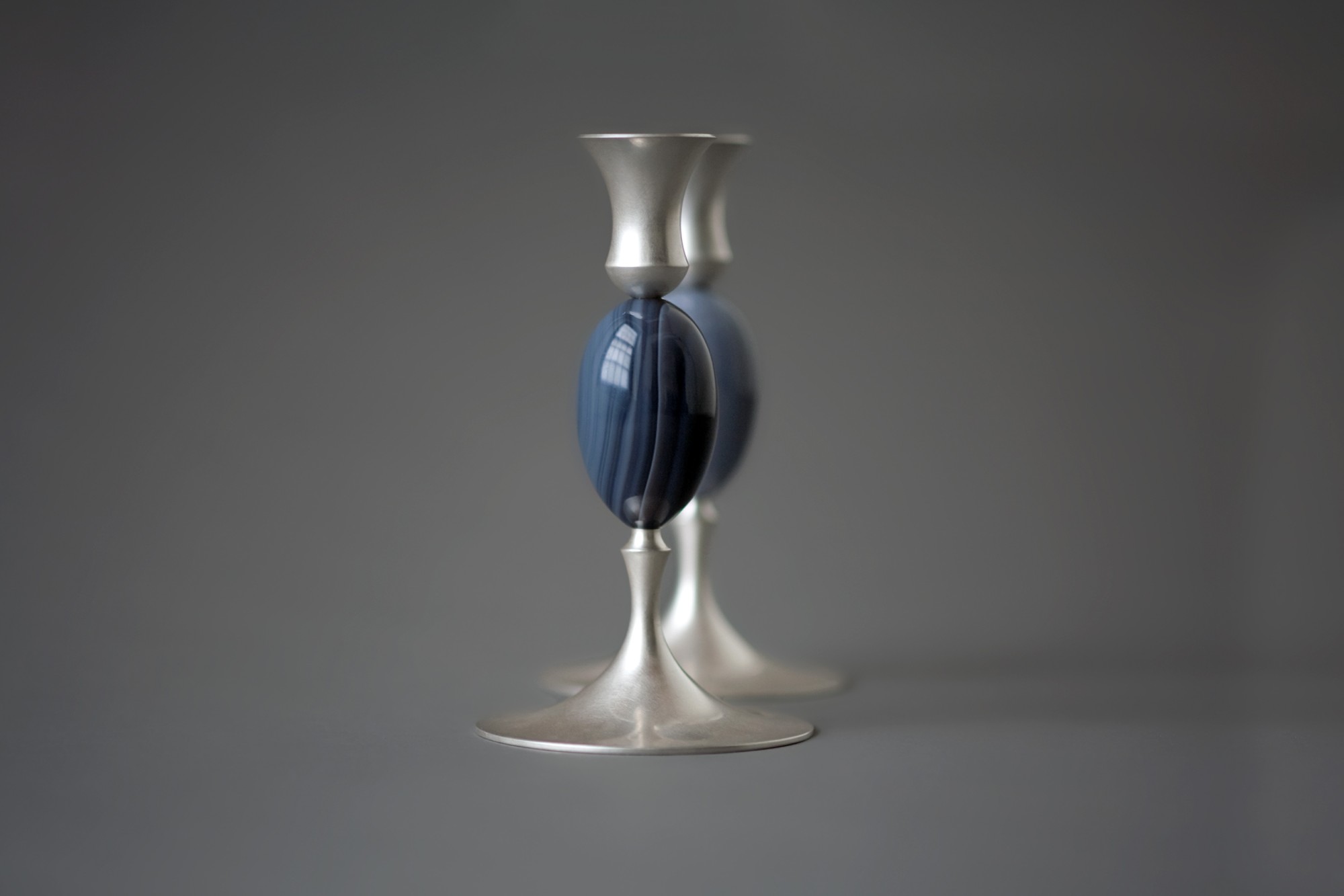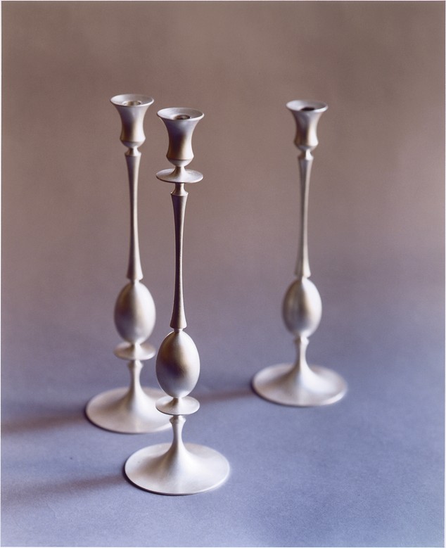 Intrigued by the classic but delicate shape of a Biedermeier candlestick found at a flea market, and impressed by the precision of nineteenth-century lathe work, he tried to capture these qualities using traditional spinning and casting techniques. Daunted, however, by the cost and labor required to realize them, the pieces remained as prototypes.